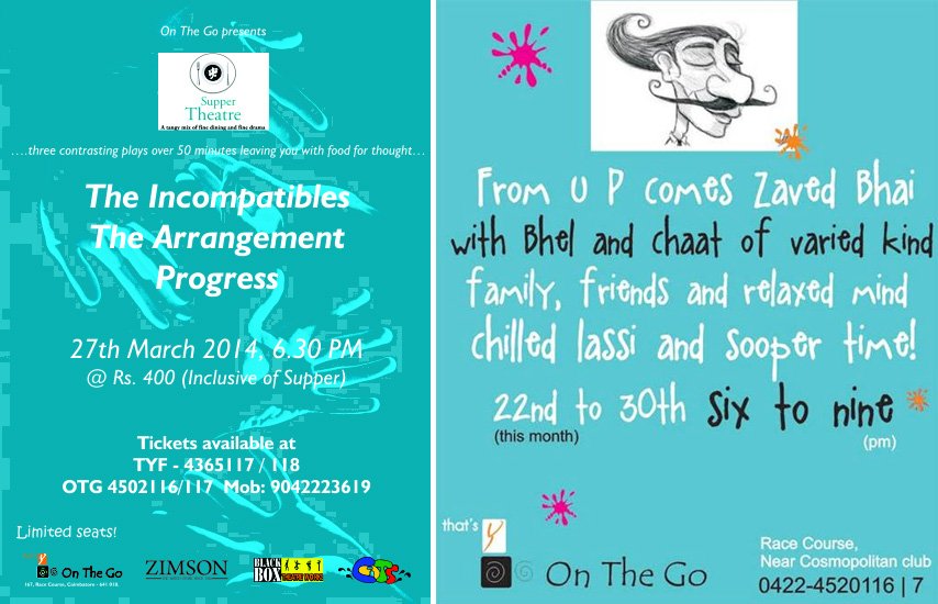 Food and fun are right around the Race course venue for you. On The Go is on full swing with high energy on serving as one of the best Contemporary Restaurant at Coimbatore. The interiors are eclectically designed with turquoise color theme to set a vibrant atmosphere. Not only the food but also comfort and delight are part of our serving. Different profile people pour in for the Eclectic Cuisines served. Our events are here to make your ordinary day a special one. Your family will definitely love it here.